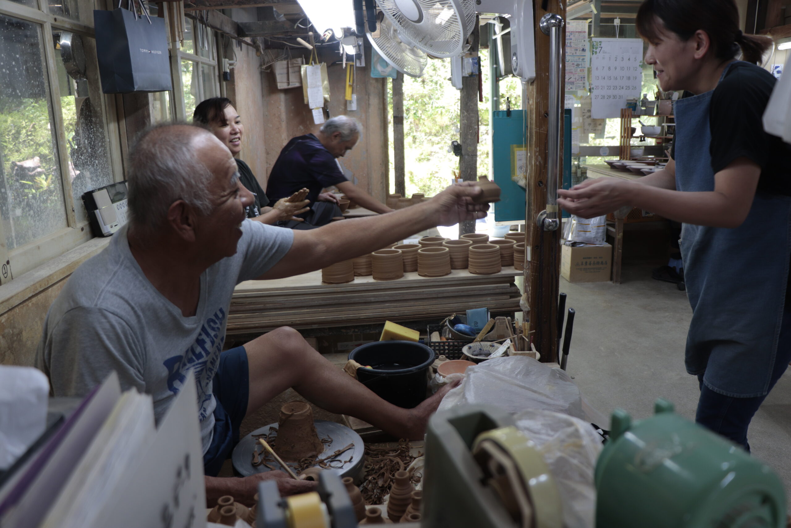 土に向かう職人の真剣で生き生きとした眼差し、やちむんを伝えるお店の活気、やちむん通りを楽しそうに歩く人々、日々の景色は美しいです。