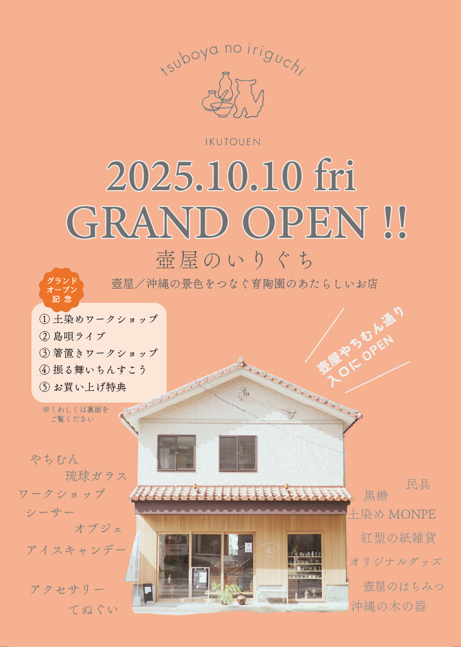 壺屋やちむん通りに8月中旬に誕生した、育陶園の6店舗目となるお店「壺屋のいりぐち」が、いよいよグランドオープンを迎えます!