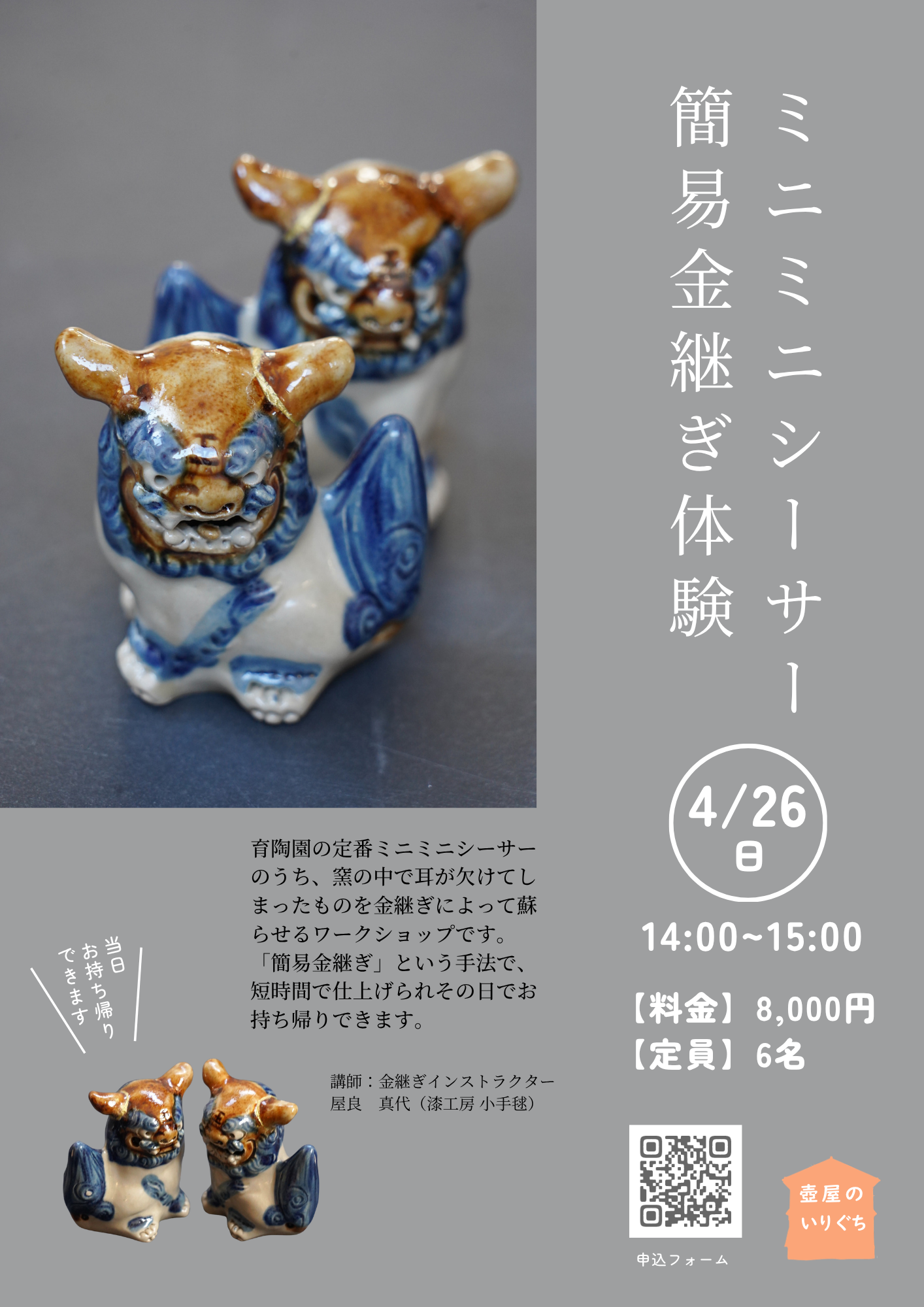 【料金】 8,000円(税込) ※ミニミニシーサー1対+金継ぎ体験込み