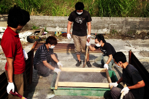 自分たちで作った”型”を用い押し型によるシーサーづくり