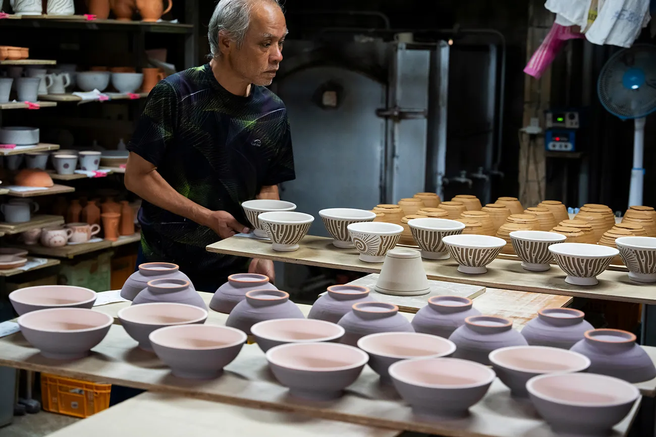 気軽に育陶園の工房を覗いてみてください。職人たちの息遣いや壺屋の雰囲気を感じていただけるはずです。 10分程度の見学でお願いしています。